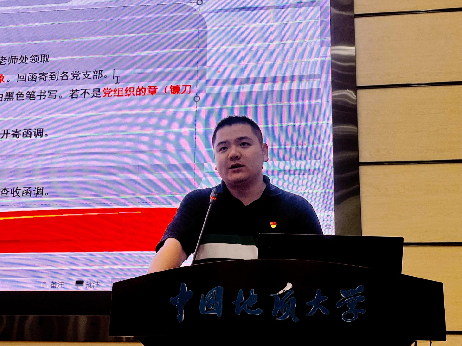 辅导员陈俊男老师向新生详细讲解了党员发展事项,重点明确了材料书写的相关问题。他强调:“组织上入党,一生一次。思想上入党,一生一世。要想成为一名合格的共产党员,必须要有正确的思想认识。团员青年要从此刻做起,规范一言一行。”