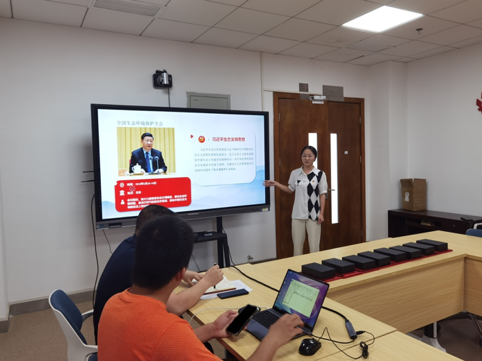学生党支部书记集体学习习近平生态文明思想。环境工程专业大学生党支部吴冰和2021级硕士研究生第一党支部易佳佩围绕“建设人与自然和谐共生的现代化”进行学习分享。吴冰详细讲解了习近平生态文明思想的基本内容、新时代推进生态文明和美丽中国建设必须坚持的“六项原则”以及坚持党对生态文明建设的全面领导等,号召大家要更加自觉投身建设人与自然和谐共生现代化的伟大实践。易佳佩介绍了世界环境日的由来,重点讲述生态文明建设“十个坚持”,最后从新污染物研究与治理个人研究方向出发,呼吁大家要在自己的研究领域深耕细作,将论文写在祖国大地上。