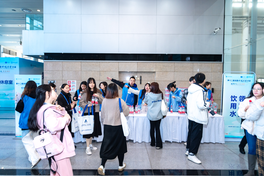 国际博览中心场地面积大,交通复杂。为保证参会代表顺利到达会场,引导组与交通组的志愿者们在大会开幕前便多次前往武汉国际博览中心,熟悉路况与会场分布,掌握会议进程,确保了大会期间参会代表有序流动。在大会打卡点,志愿者们装扮成可爱的小水滴,与代表们合影留念,成为会议期间一道亮眼的风景。