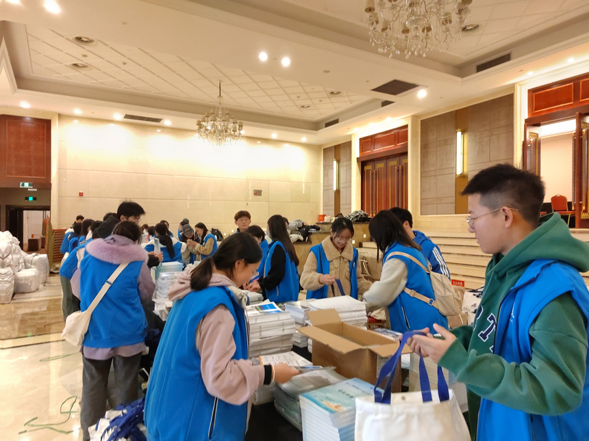 志愿者分发会议材料