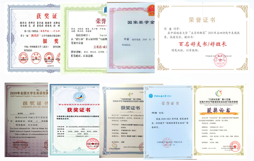 环境工程专业大学生党支部全体党员同志在各方面都有取得不错的成绩,在个人荣誉类上成果斐然,支部党员在互联网+大赛、节能减排大赛、节能减排大赛等专业学科赛事中获国家级奖项10余项,省部级20余项,其中,许涵同志获第八届中国国际互联网+大赛全国银奖,湖北省金奖;支部党员荣获国家级、社会类奖学金20余项,荣获院校“优秀个人”、“优秀共产党员”称号30余项。2021-2023三学年,支部成员获得国家奖学金共11人次,获得国家励志奖学金共7人次,其中2023年,国奖3人,国励2人;在2022-2023学年五四评优中,支部成员累计获得百好支书,优秀团干,优秀团员等称号9项,在中国地质大学(武汉)2023届本科先进毕业班、优秀毕业生评选中,支部成员获得优秀毕业生累计9名。支部2020级成员保研率近70%。