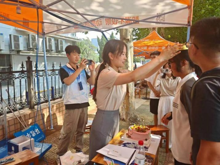 9月2日下午,本科生新生施婷婷来到学院报到。这天恰好是施同学的19岁生日,辅导员老师和志愿团的伙伴们提前为施同学准备了生日蛋糕,欢迎她在这个特殊的日子加入p站视频 的大家庭。