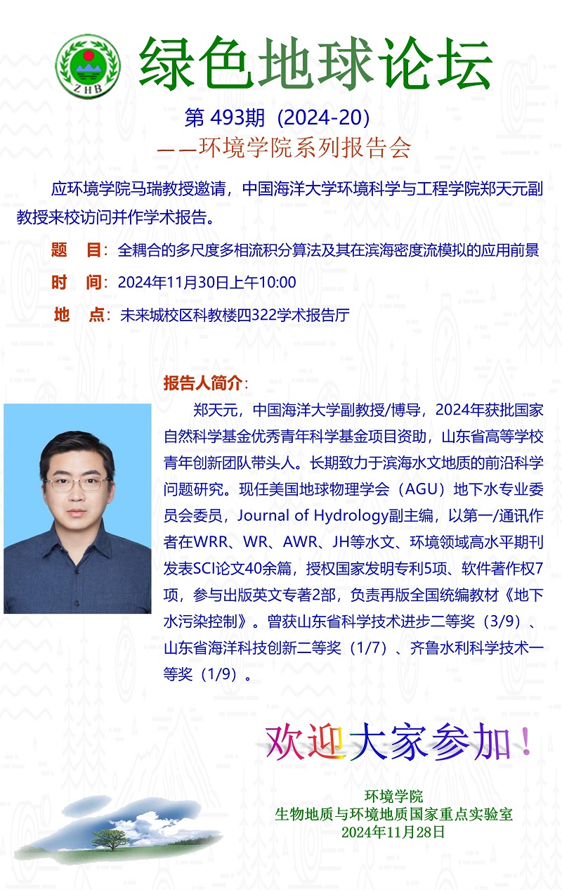 中国海洋大学环境科学与工程学院郑天元副教授学术报告