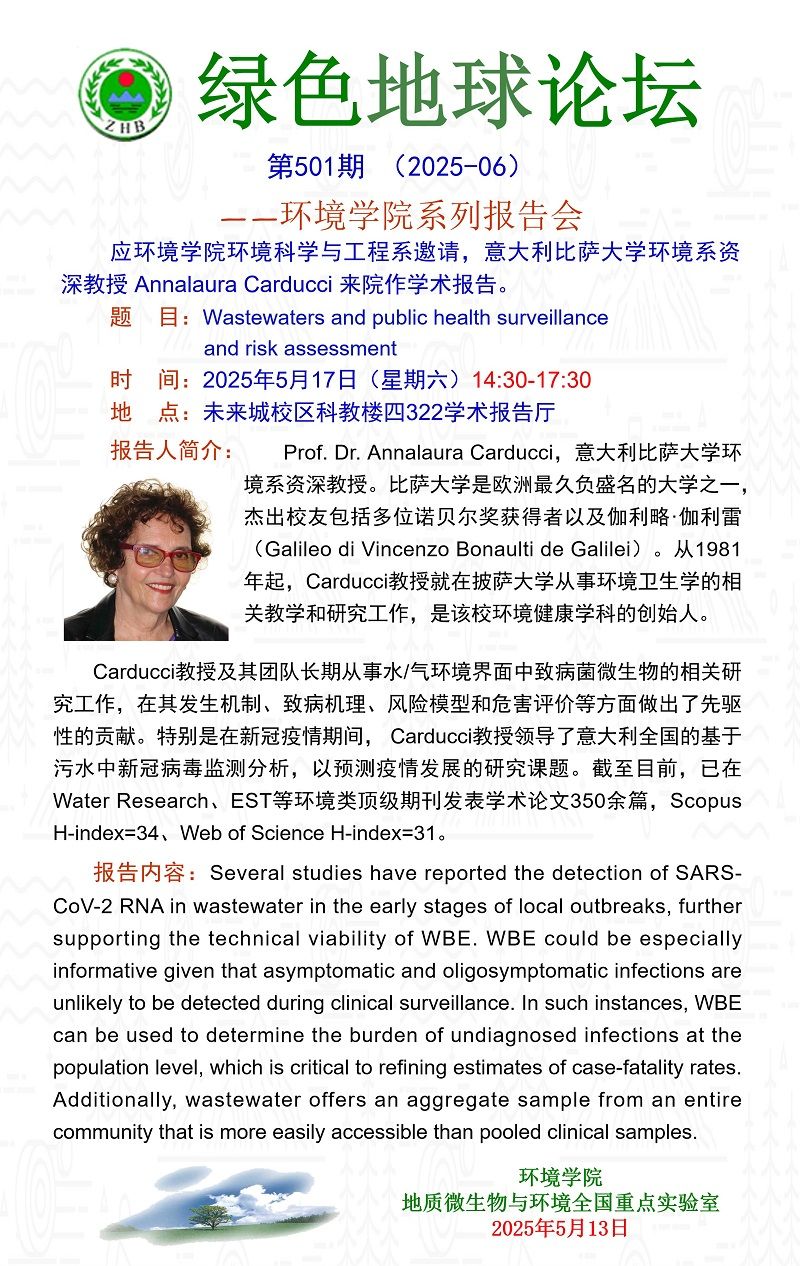 意大利比萨大学环境系资深教授 Annalaura Carducci 学术报告