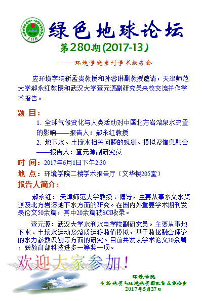 1. 全球气候变化与人类活动对中国北方岩溶泉水流量的影响——报告人:郝永红教授