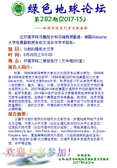 绿色地球论坛第281期(2017-14) ——p站视频 系列学术报告会