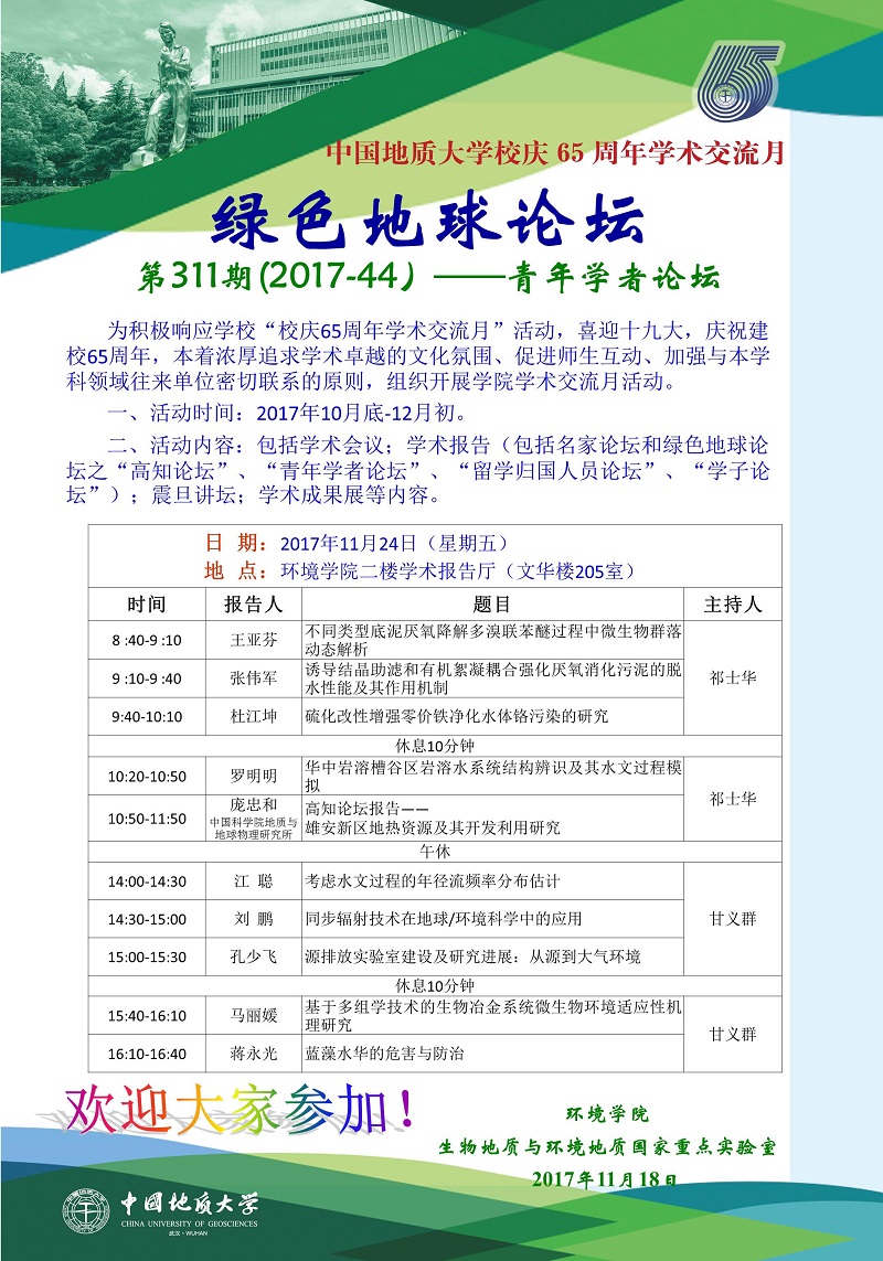 “校庆65周年学术交流月活动”绿色地球论坛——青年学者论坛