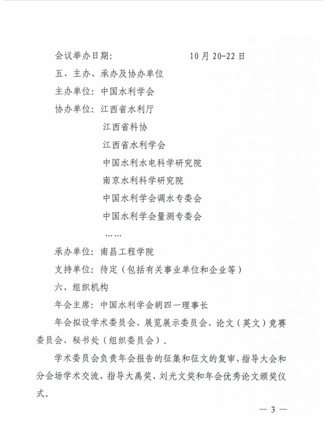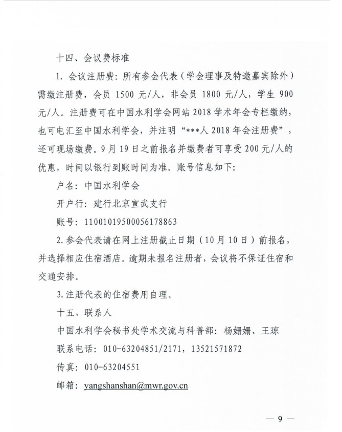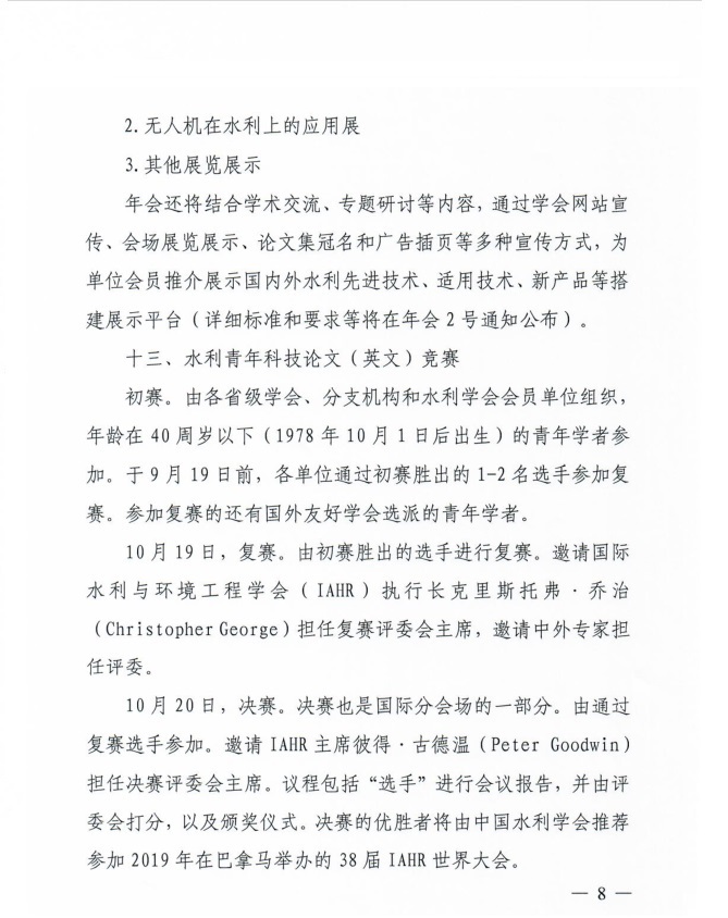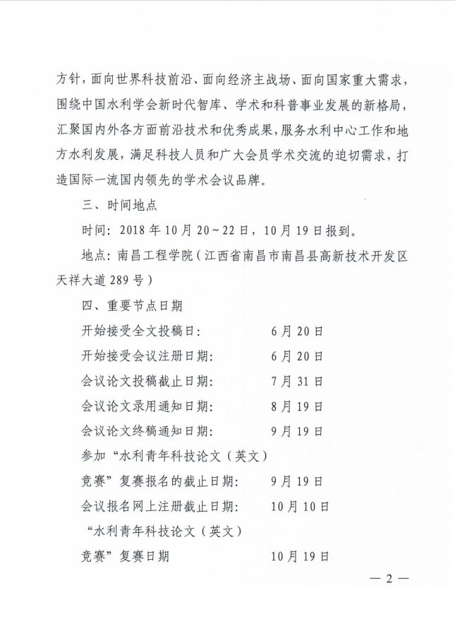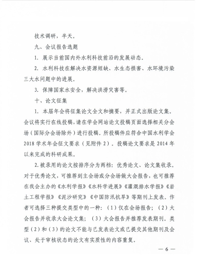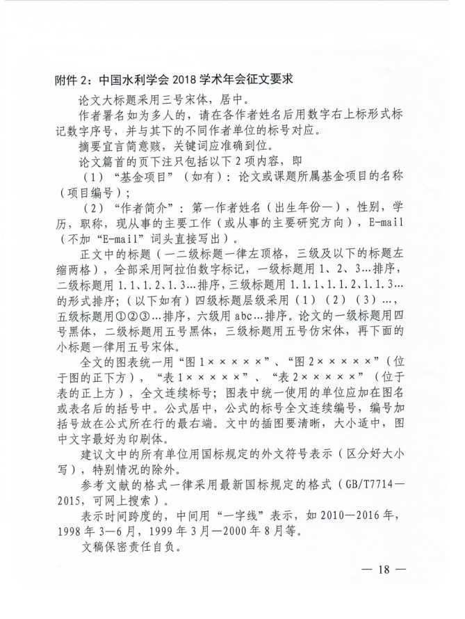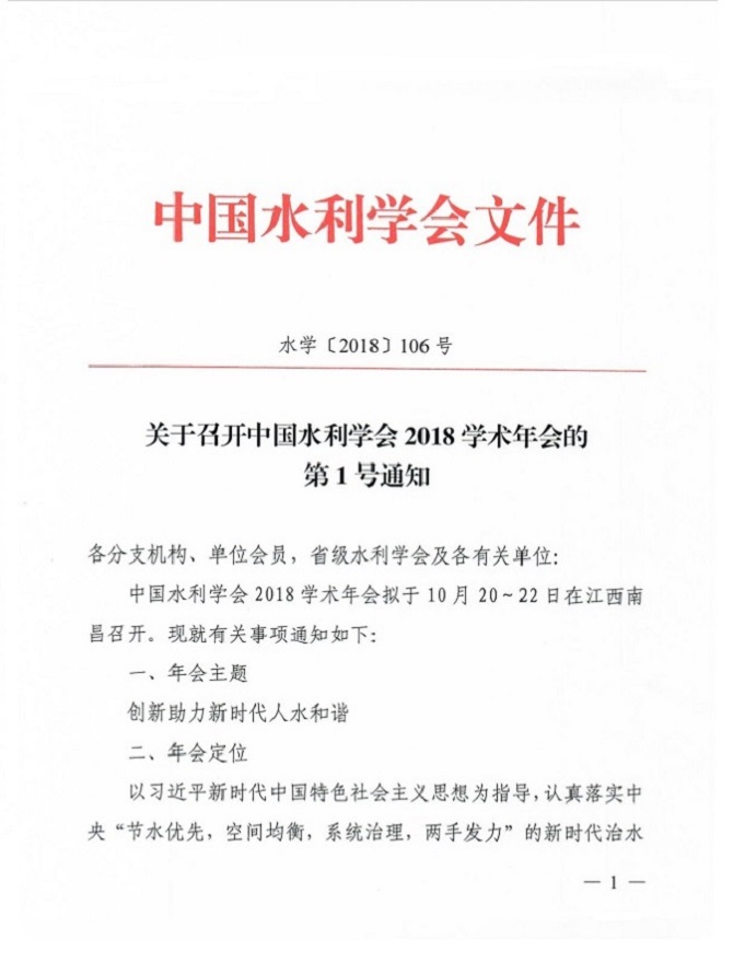 转发中国水利学会2018学术年会1号通知