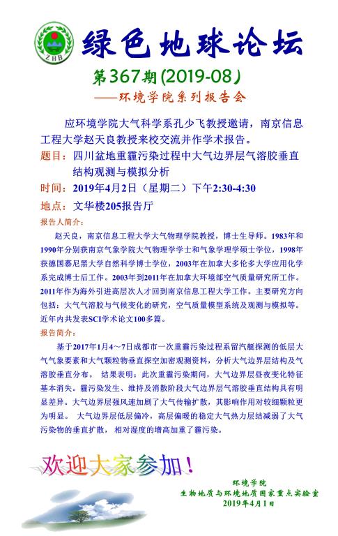 题目:四川盆地重霾污染过程中大气边界层气溶胶垂直结构观测与模拟分析