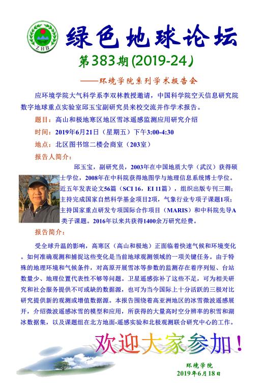 中国科学院空天信息研究院数字地球重点实验室邱玉宝副研究员学术报告