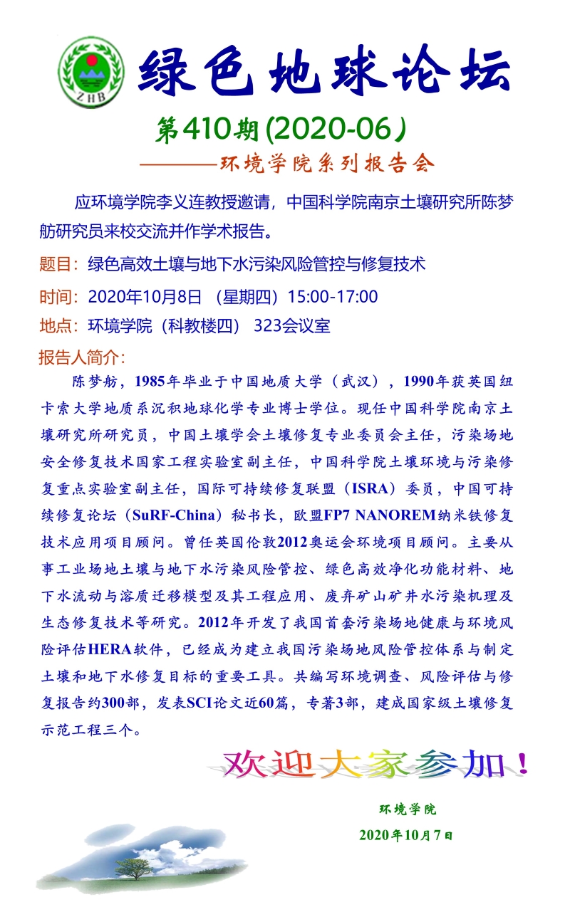 中科院南京土壤研究所陈梦舫研究员学术报告