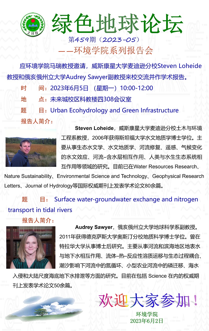 威斯康星大学麦迪逊分校Steven Loheide教授和俄亥俄州立大学Audrey Sawyer副教授学术报告