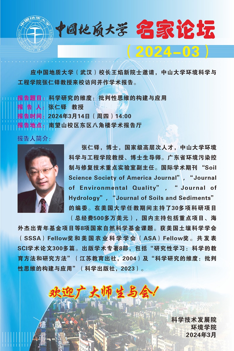 中山大学环境科学与工程学院张仁铎教授做客“名家论坛”