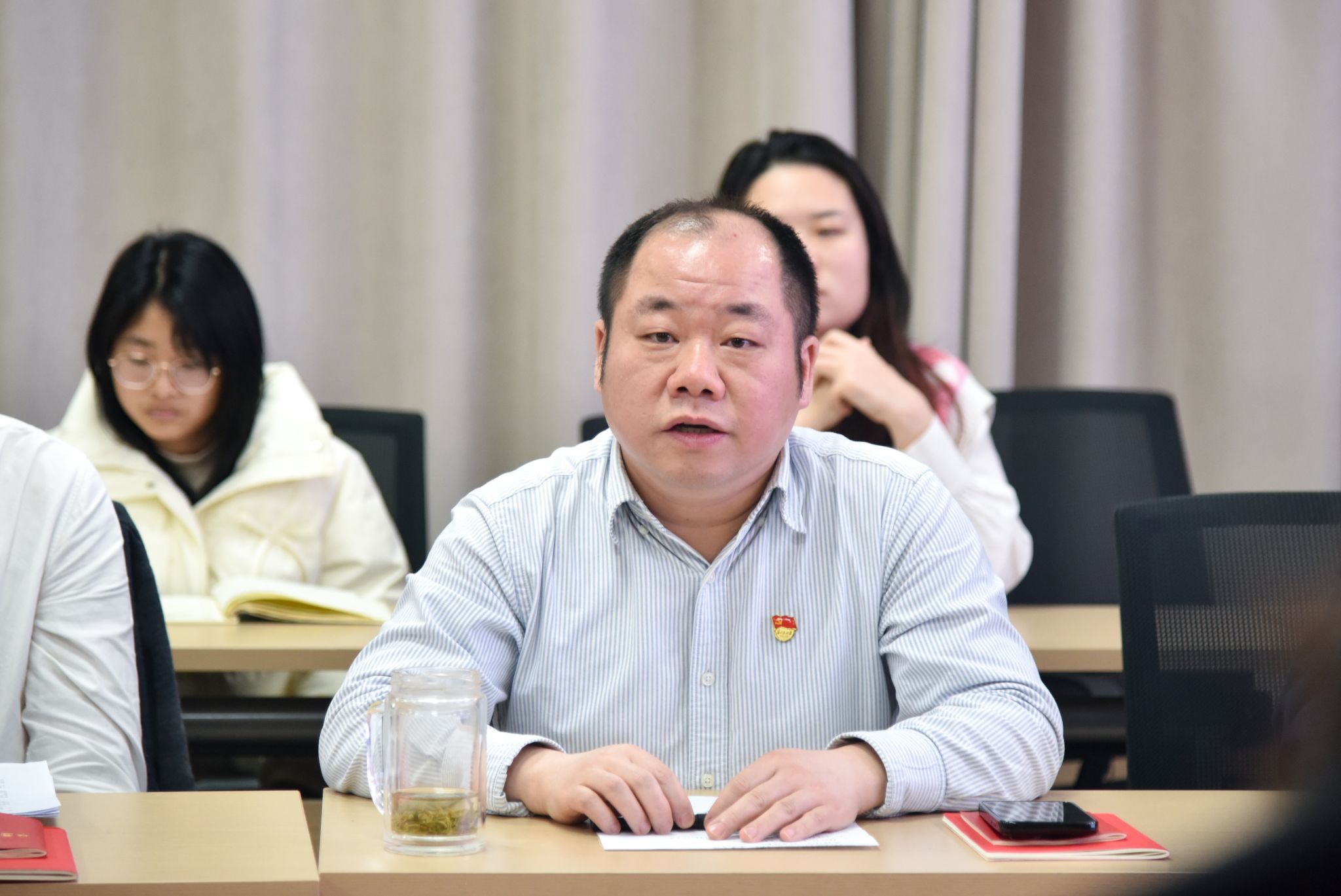 院直党支部党员王海锋、刘凤莲、陈俊男、沐择凤、左麦枝、肖小芳、宋霖、何祝池、刘欣然、孟庆达等老师,环境水文地质研究生第一党支部党员代表周传富、刘頔、李科志等同学积极交流发言,畅谈学习体会。大家一致认为,要把学习贯彻习近平总书记重要讲话精神与学习贯彻习近平总书记关于教育的重要论述和全国教育大会精神、与学习贯彻两会精神贯通起来,深刻领悟“两个确立”的决定性意义,增强“四个意识”、坚定“四个自信”、做到“两个维护”,切实把习近平总书记重要讲话和全国两会精神落到实处。要深刻理解“71020”高校创新体系建设的要求,为加快推进支点建设汇聚力量,为建设教育强省作出更大的贡献。要按照上级要求,严格开展深入贯彻中央八项规定精神学习教育。要深学细悟学校关于师德师风建设和考核的相关文件精神,弘扬教育家精神,涵养优良师德师风,引导教职员工不断提升思想政治素质和职业道德水平。