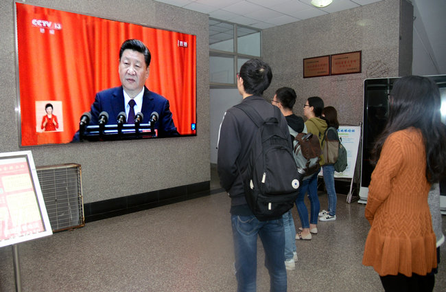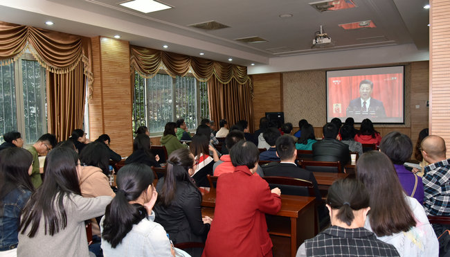 党委组织学院党委委员、党支部书记和师生党员在文华楼205报告厅和一层大厅集中收看收听习近平代表第十八届中央委员会向大会作的题为《决胜全面建成小康社会 夺取新时代中国特色社会主义伟大胜利》的报告。100多名师生党员参加了收看收听十九大开幕会。