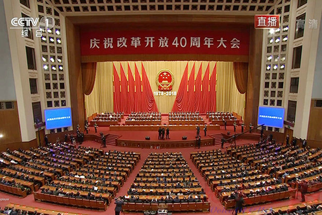(p站视频 张学海)2018年12月18日上午10时,庆祝改革开放40周年大会在北京人民大会堂隆重举行。p站视频 党委组织师生在文华楼205报告厅集中收看收听。