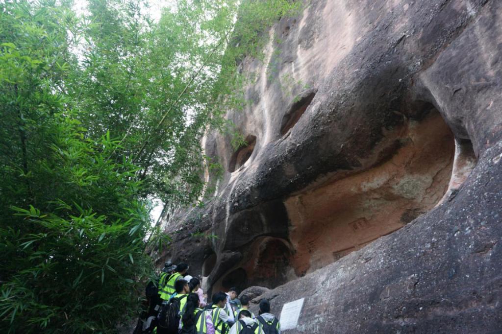 在这里,有一关,你我对它而言只是匆匆过客;但有人途经此处时却曾叹言“半生都在梦中,今日始觉清虚”。他就是北宋的法云居士,他途游此地,因此山岩瑰丽而始大梦初醒,题“梦觉关”。梦觉关是丹霞一路线中最能体现差异风化特点的地质风貌,这里的软硬岩层分布明显,构造不同,故而受到的风化程度差异明显。历经沧海桑田的变迁,形似蜂窝的洞穴进一步整合成为了丹霞的一张名片。
