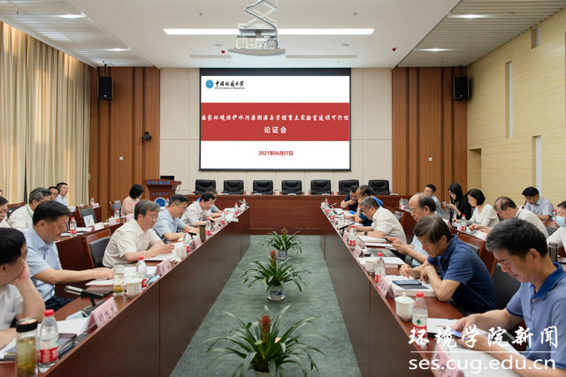 (通讯员杨逸君 编辑严丽莎)6月7日上午,生态环境部在我校组织召开了国家环境保护水污染溯源与管控重点实验室(以下简称重点实验室)建设可行性论证会。生态环境部科技与财务司一级巡视员朱广庆、处长陈胜、一级调研员刘海波等,湖北省生态环境厅一级巡视员李瑞勤、科技合作处处长张忠华,建设依托单位中国地质大学(武汉)校长王焰新院士、副校长赖旭龙、相关学院及职能部门负责人,共建单位中国长江三峡集团有限公司科技创新部主任李文伟、副主任李晶华、子公司长江生态环保集团副总经理李巍,实验室主要成员等参加论证会。