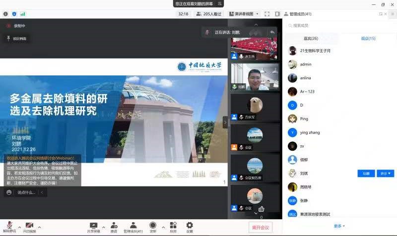 刘鹏教授作《多金属去除填料的研选及去除机理研究》大会报告
