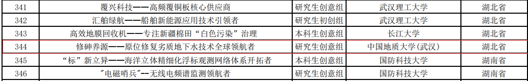 由程毅康、冯宇、刘子源、华祎梓、陈鑫鑫、雷雨濛、罗敬文、孟一帆、蔡子延、王倩、刘佳、王宗星、韩鹏、章怡婧、陈奕璇参与的“炭合环境——致力于从源头开展地下水-土壤协同治理,助力乡村振兴”入围“青年红色筑梦之旅”赛道全国总决赛现场赛。由许涵、程毅康、张彤彤、蔡子延、刘子源、邱洋、熊俊风、孙文锦、袁岭迤、田一茜、刘家宜、李舒奕、刘子涵参与的“修砷养源——原位修复劣质地下水技术全球领航者”入围高教主赛道全国总决赛现场赛。