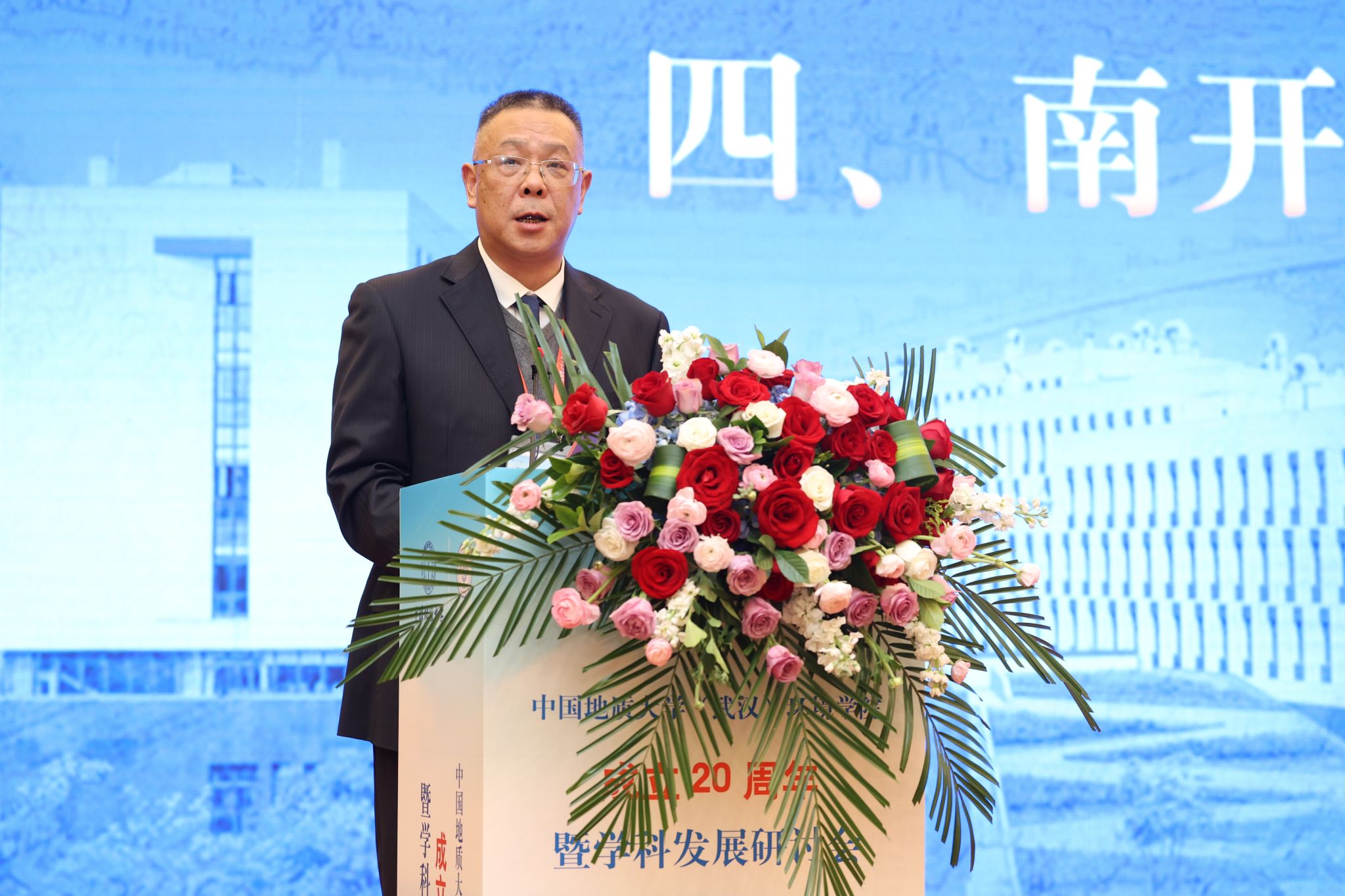 中国地质大学(武汉)校长王焰新院士讲话。他深情回顾了p站视频 建院以来的不易,他指出,20年来能够取得一些发展成就,靠的是学校几届党委行政的正确领导,靠的是学院领导班子和师生们发扬“艰苦朴素、求真务实”的校训精神和1952年以来传承下来的“老水文人”奋发图强的优良传统,靠的是学术界、产业界、各级政府部门和海内外校友的关心支持。要倍加珍惜,感恩奋进,当仰无愧于天、俯无愧于地、行无愧于人、止无愧于心,当永葆赤子情怀,永存敬畏之心,永做奋斗之士。