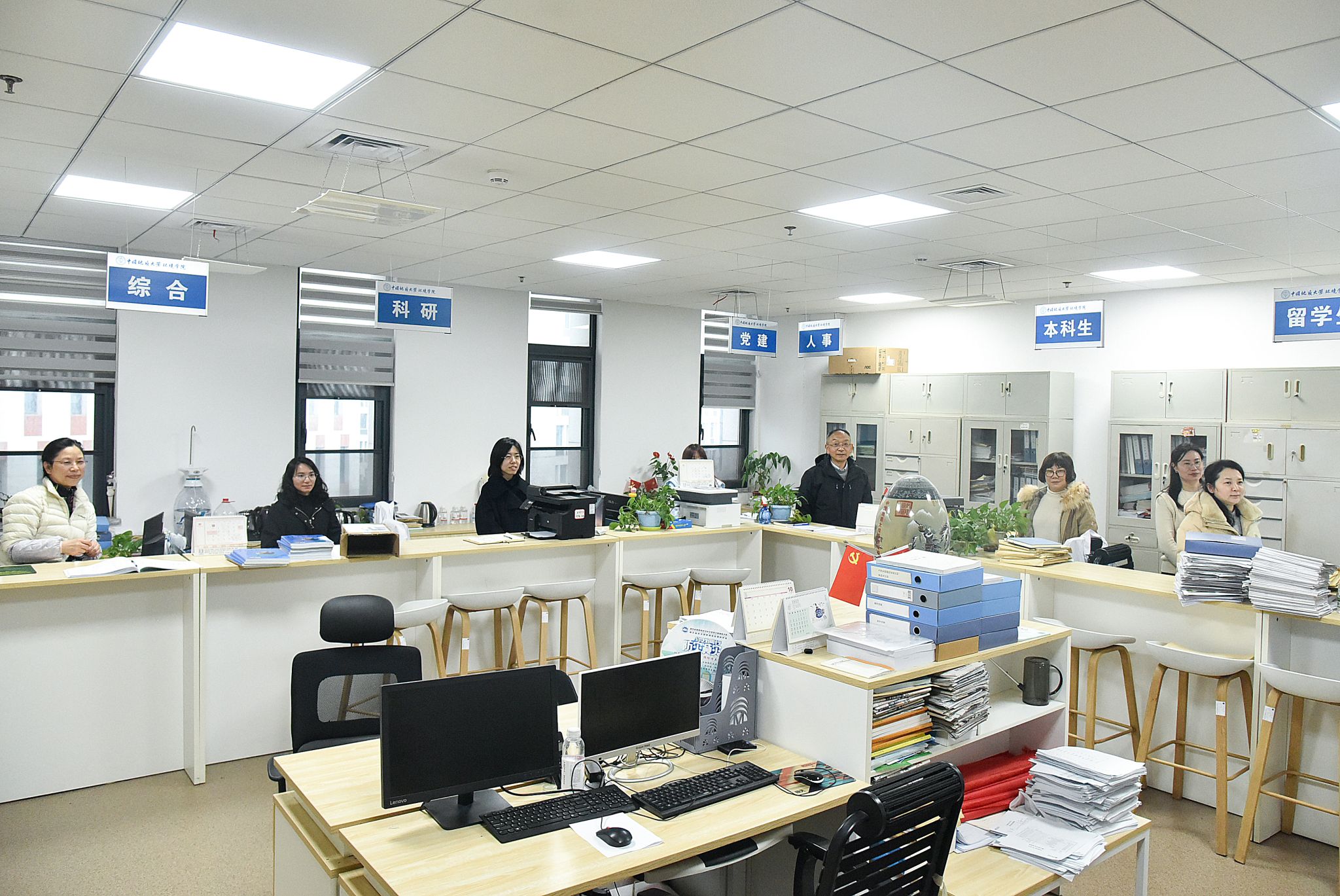 黄晓玫书记一行参观了学院建设成果展,随后来到学院办公室和学生工作办公室,看望慰问了学院办公室教师、辅导员,了解他们的生活和工作情况,认真听取了学院人才培养、就业进展、中加班建设等方面的情况。